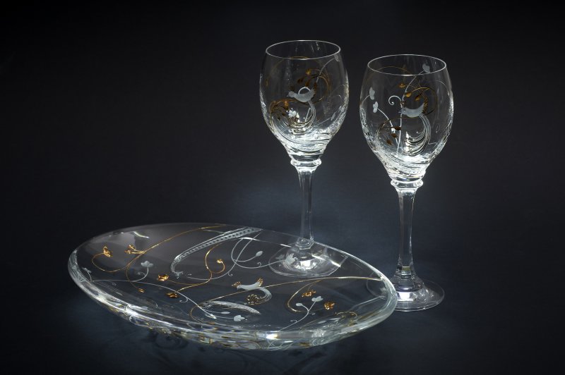 gravirano steklo, krožniki, posodice za nakit, sklede, vaze, vrči, žganjarji