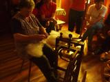Nostalgične sobotne ure so se nadaljevale... Mikano volno so prsti in vrtenje kolovrata predli v nit...