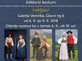 Razstava "Le kam sodi ta obleka? Nekdanja obleka, "narodna noša", folklorni kostumi" je na ogled v Galeriji Veronika (Glavni trg 6 v Kamniku).