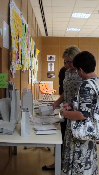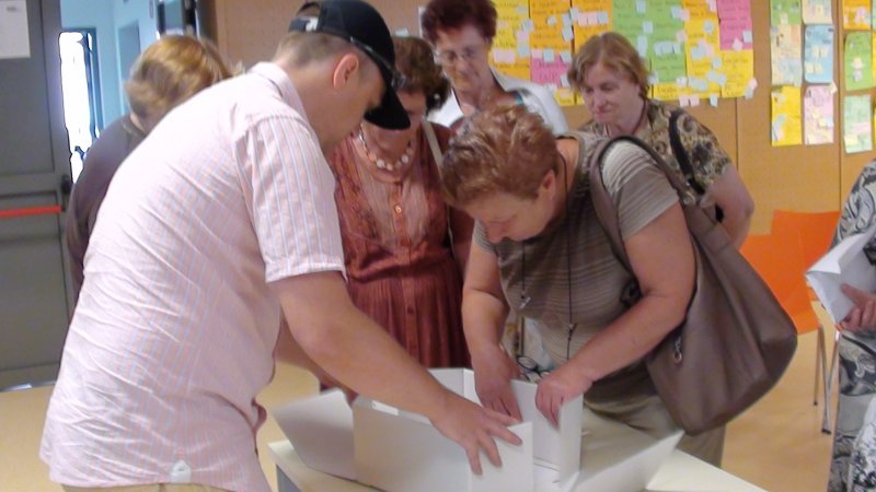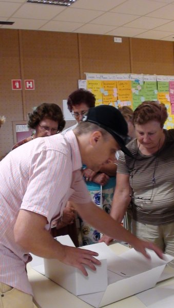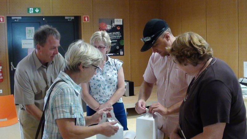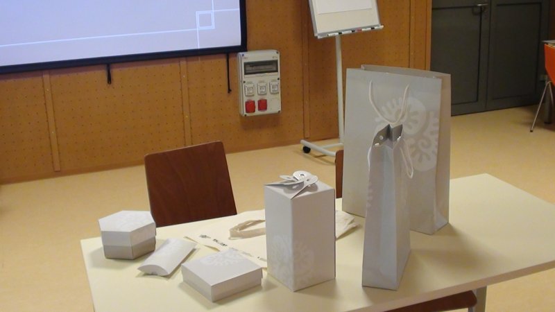 Oblikovalec Andrej Knez, ki je pripravil celostno podobo, je udeležencem predstavil posamezne oblike embalaže in njihovo sestavljanje ter jim svetoval, kako jo uporabljati za različne izdelke.