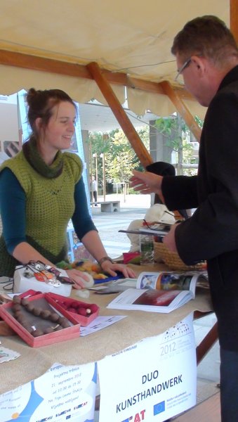 Na projektni tržnici, ki je 21. septembra 2012, ob Dnevu evropskega sodelovanja 2012, potekala na Trgu Leona Štuklja v Mariboru, smo sodelovali tudi projektni partnerji s predstavitvijo projekta Duo Kunsthandwerk, ki je sofinanciran v okviru Operativnega programa Slovenija-Avstrija 2007--2013.