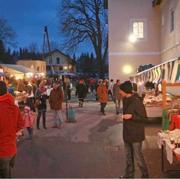 V soboto popoldne, 1. decembra 2012, je Slovensko prosvetno društvo Šentjanž pred k & k centrom pripravilo že tretjo božično rokodelsko tržnico, na kateri so tudi letos sodelovali rokodelci iz Slovenije, ki so vključeni v projekt DUO Kunsthandwerk. Iz Škofje Loke se je tržnice z medenimi kruhki udeležila Cirila Šmid, iz Slovenj Gradca Simona Večko z naravnimi mili, z Raven na Koroškem Jelka Šinko s pletenim nakitom iz žice, s Prevalj pa Tatjana Ladinek, ki izdeluje blazine z naravnimi polnili. Alja Starc, ki je svoje glinene, porcelanaste, tekstilne in volnene izdelke razstavila v paviljonu k & k (mrežnem čezmejnem informacijskem centru za domačo in umetnostno obrt), ima svoj ustvarjalni atelje v Hiši Layer v Kranju, s katero Slovenska prosvetna zveza v zadnjem času vzpostavlja bogate kulturne stike.