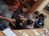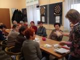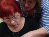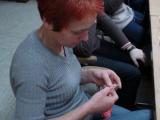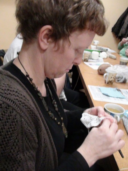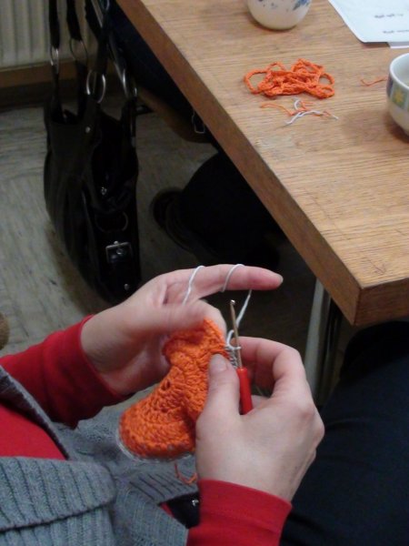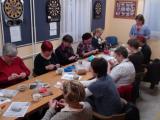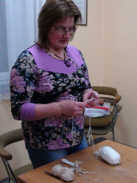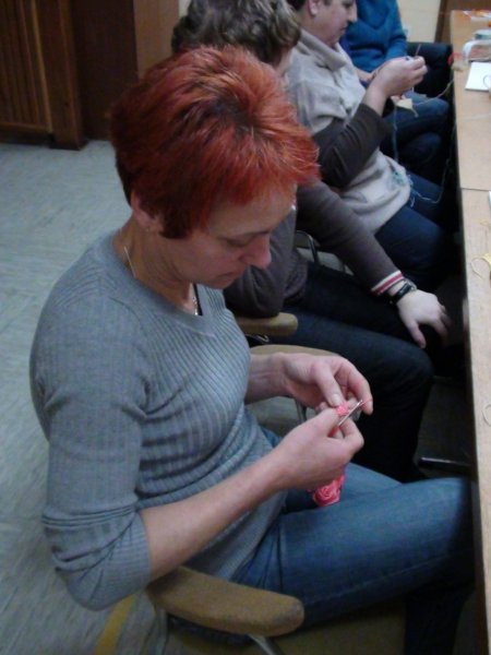 Mentorica Marjana Viltužnik odlično podaja svoje znanje, saj nas je že na prvem srečanju naučila osnovne, verižne, polšibične in šibične petlje, na drugem srečanju, 1. marca, smo udeleženke usvojile kvačkanje kroga in kvadrata, na zadnjem srečanju, 5. marca, pa smo spoznale osnovne vzorce za izdelavo kvačkanih izdelkov in izdelale kvačkano rožico, »tiste ta pridne« pa tudi kvačkane copatke.