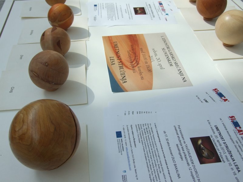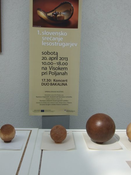 V Sokolskem domu v Škofji Loki (1.4.- 18.4. 2013) in v Štefanovi hiši v Poljanah (19.4. - 30.4. 2013) bodo na ogled stružene krogle iz bogate zbirke različnih vrst lesa Antona Suhadolca. Krogle je stružil Vojko Kovač.