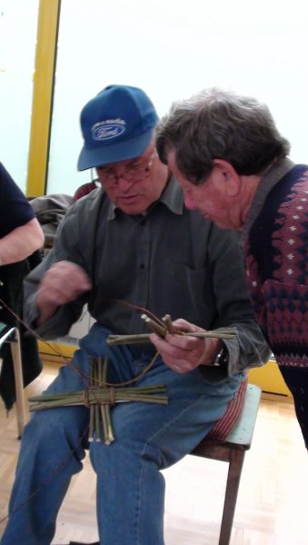 Mentor Augustin Novak je udeležencem predstavil postopek priprave materiala (različne vrste šibja) in potrebne delovne pripomočke ter tehniko pletenja iz šibja. Pod njegovim vodstvom so udeleženci izdelali pleteni podstavek iz šibja oz. dno košare. Ker je šibje primerno za spletanje predvsem v jesenskem in zimskem času, bomo srečanje nadaljevali jeseni.