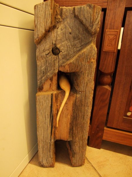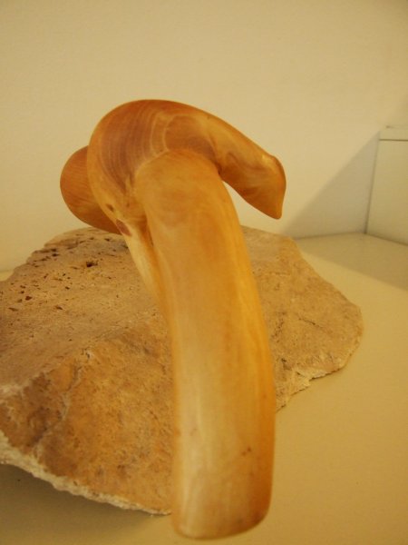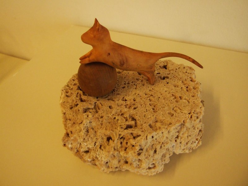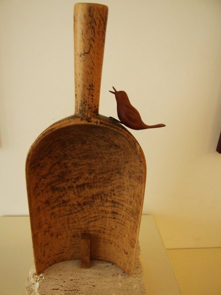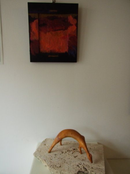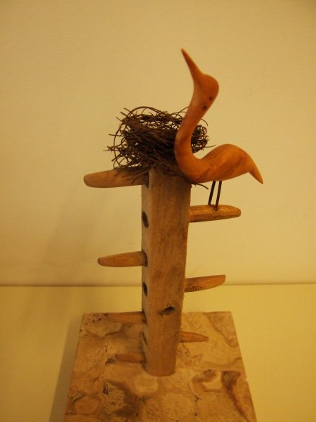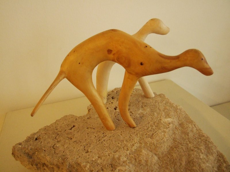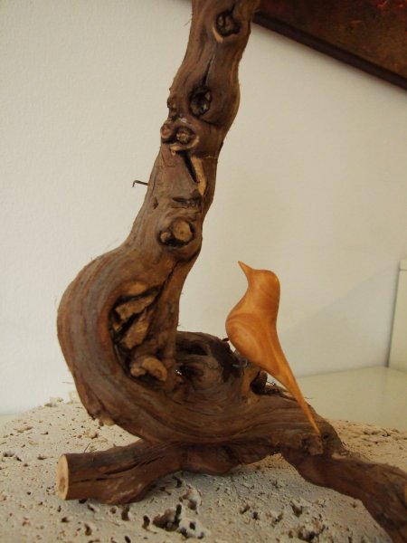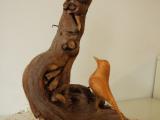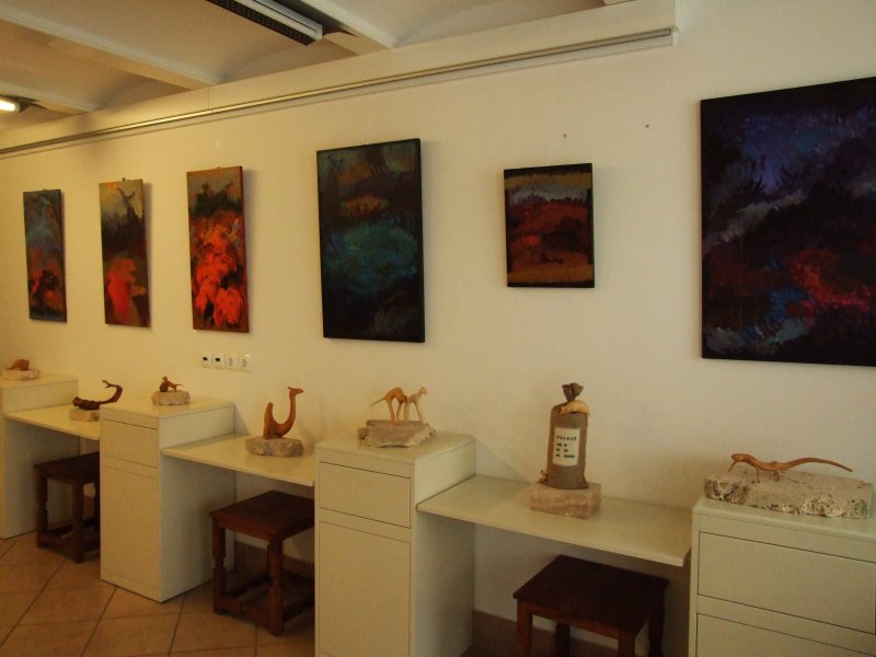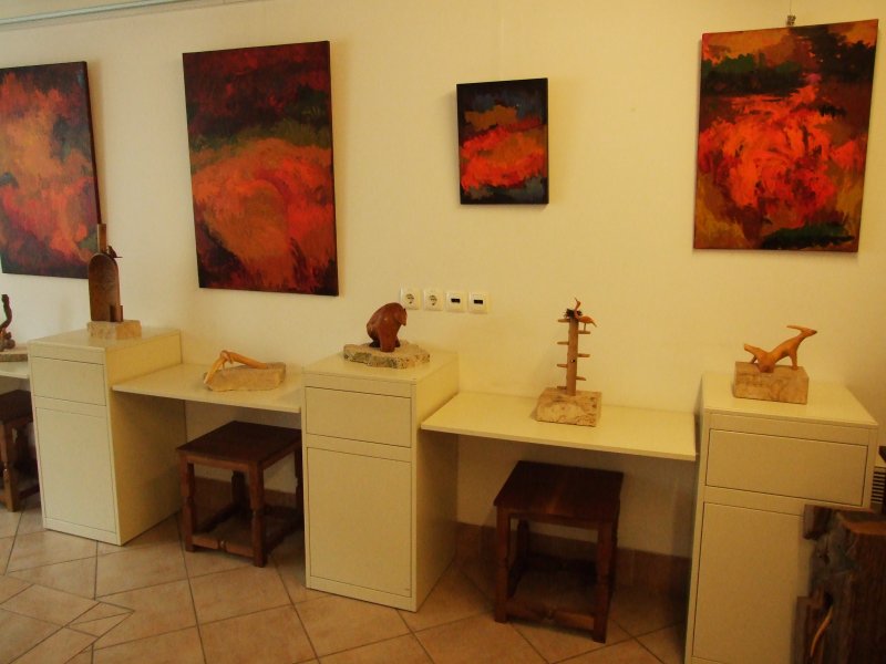Avgust Babnik iz korenin oblikuje najrazličnejše skulpture, ki se na razstavi dopolnjujejo s slikami Agate Pavlocev, katere je ustvarila brez čopiča, s svojimi rokami.
