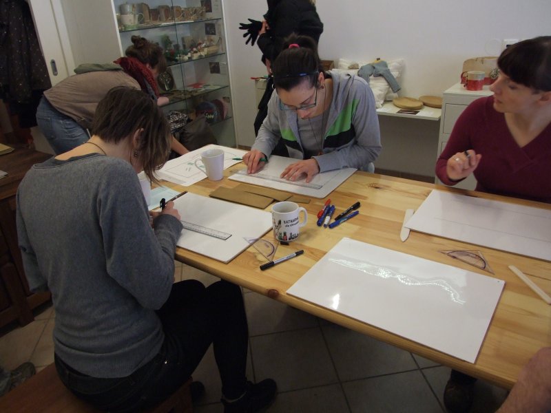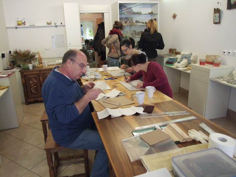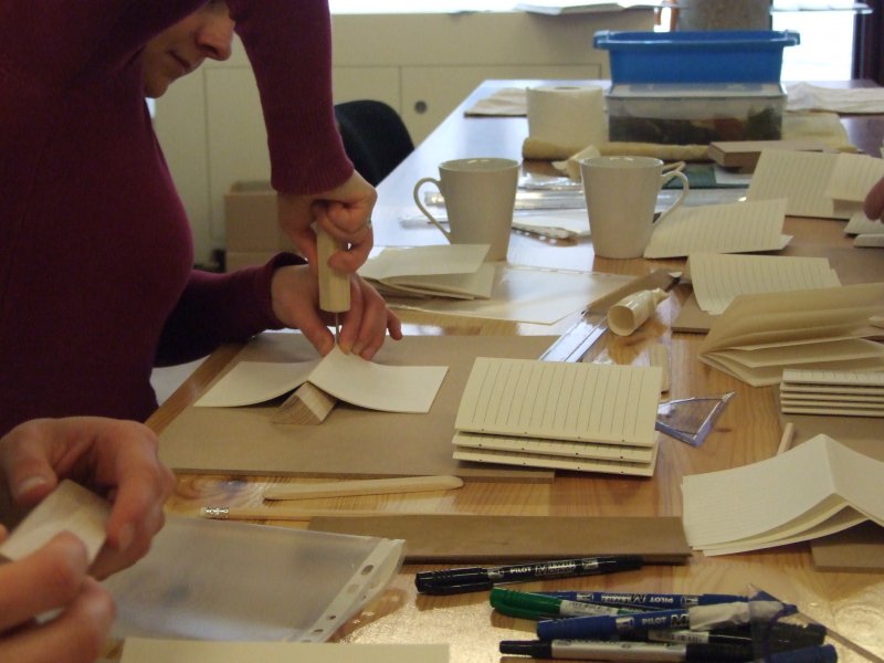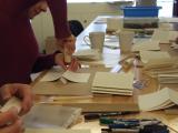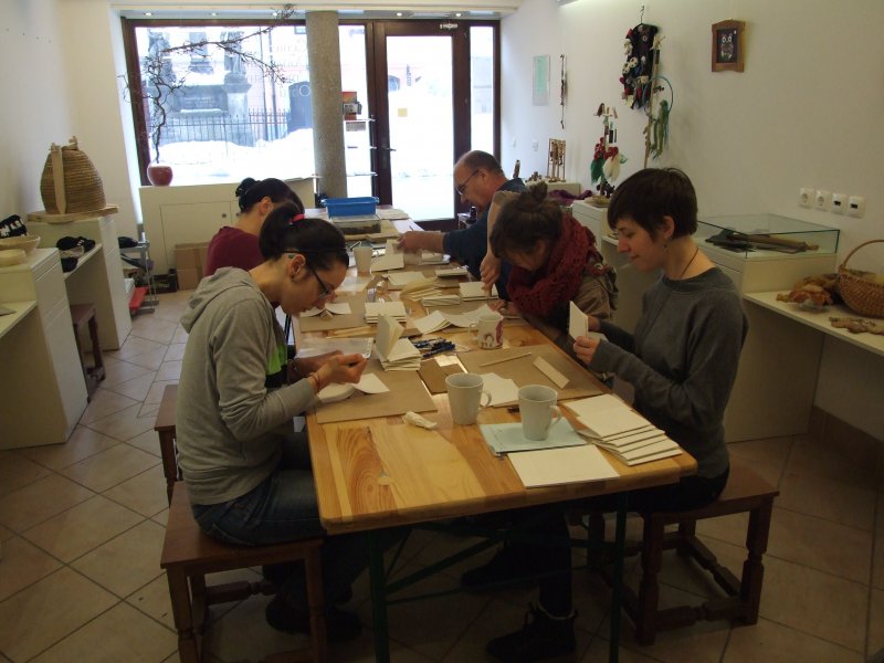 Vzdušje je bilo res prijetno, naše delo smo pripeljali do polovice... Vsi težko čakamo naslednjo soboto, da izvedemo še drugi del delavnice in dokončamo naše ročno izdelane knjige.