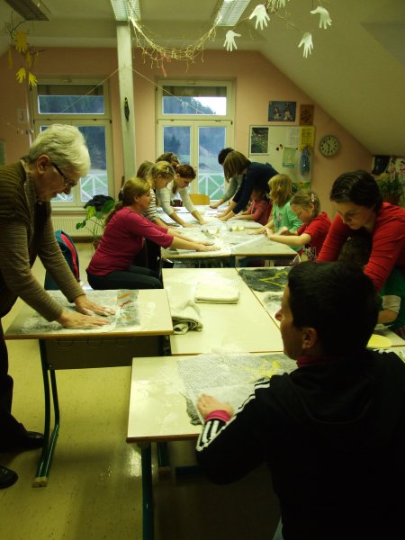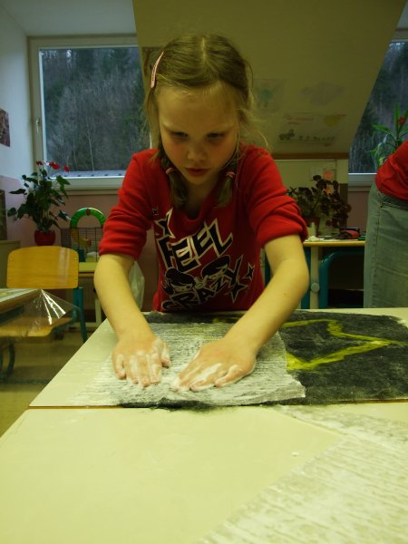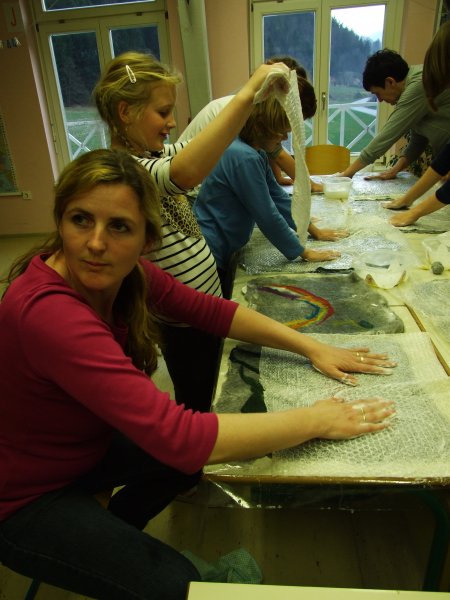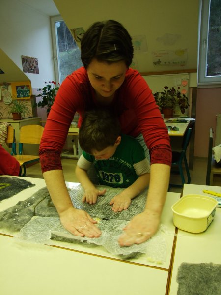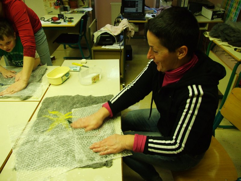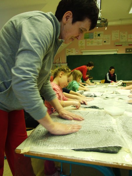 V ponedeljek, 17.3.2014, smo na OŠ Bukovščica polstili... Vodstvo šole daje poseben pomen rokodelski ustvarjalnosti in odgovornosti do etnološke dediščine, zato Rokodelski center DUO Škofja Loka s šolo večkrat sodeluje. Tudi v ponedeljek je bilo tako... Učiteljice, otroci in njihovi starši so se ob volno družili dobri dve uri in si izdelali polstene podlage za sedenje.