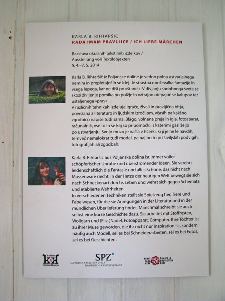 V soboto, 5.4.2014, je bil poseben dan...pravljičen...po zaslugi naše rokodelke Karle B. Rihtaršič, ki je v svoji rokodelski zgodbi s svojo prvo samostojno razstavo obrnila nov list, obiskovalcem pa s svojimi izdelki pripoveduje nešteto zgodb in pravljic skozi vsa leta svojega ustvarjanja.