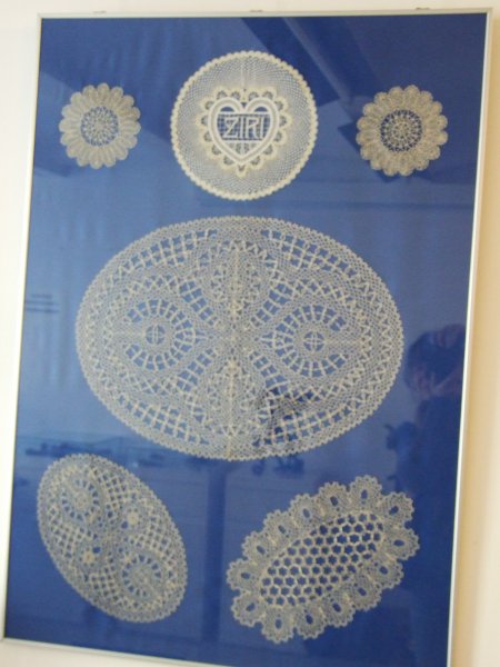 Članice Klekljarskega društva Cvetke Žiri pa so razstavile svoje klekljarske mojstrovine - klekljani grbi evropskih glavnih mest vas bodo peljali po Evropi. Na razstavi je le del zbirke, saj so mojstrice sklekljale vseh 27 grbov (28 še čaka na izdelavo).