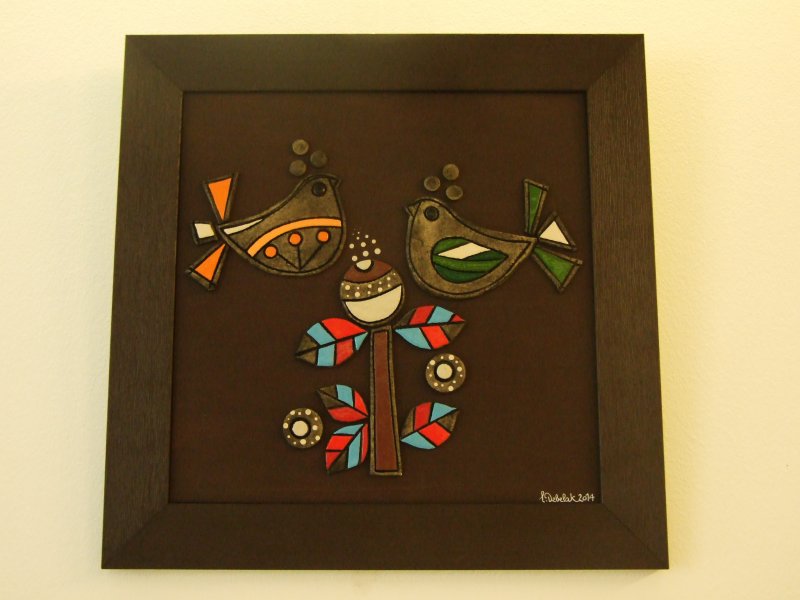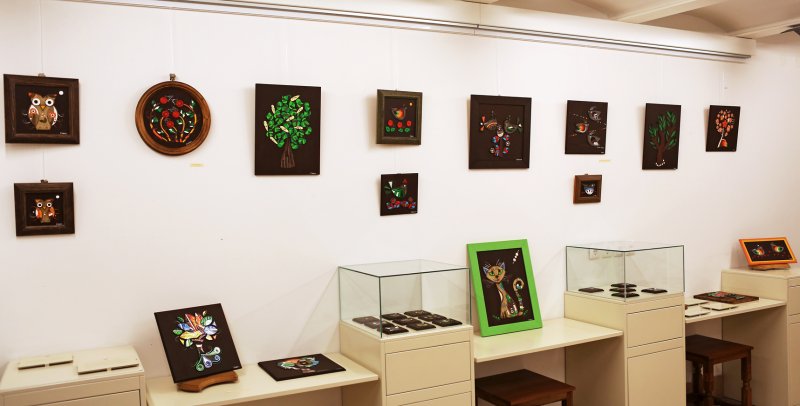 Motivi glinenih reliefov se gibljejo med preteklostjo in sedanjostjo. Od motivov s starih skrinj in pastirskih kožuhov, pa do sodobnih domišljijsko obarvanih vzorcev.