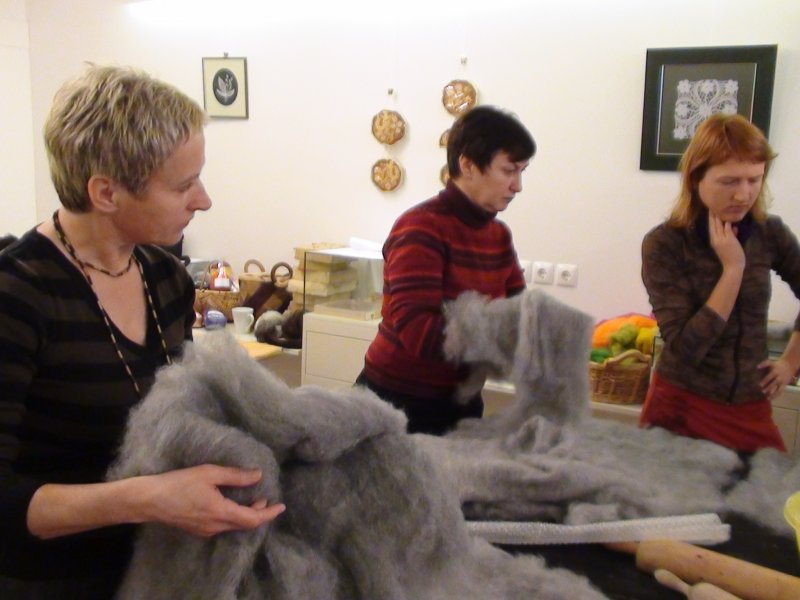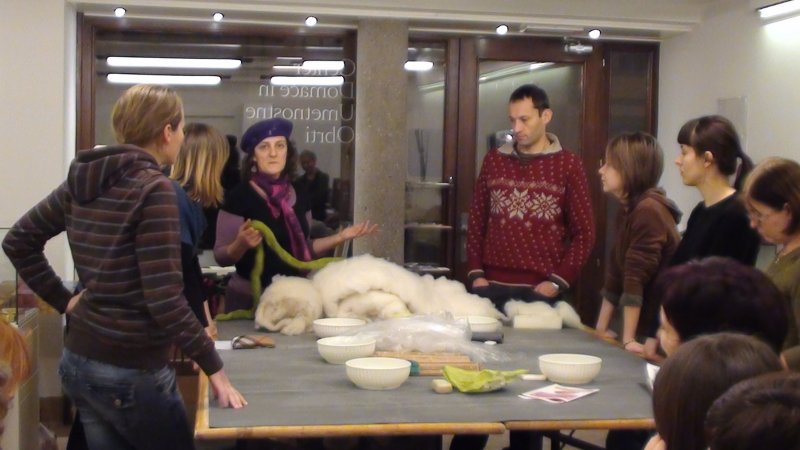 V začetku decembra smo v Rokodelskem centru DUO izvedli še 3 sklop srečanj v okviru cikla volna. Na čezmejnem rokodelskem srečanju odprtega tipa ljubiteljev rokodelskih znanj z mojstrico mentorico Aljo Venturini iz KUD Sredina so se udeleženci spoznali z mokro in suho tehniko polstenja volne in izdelali prve polstene izdelke.