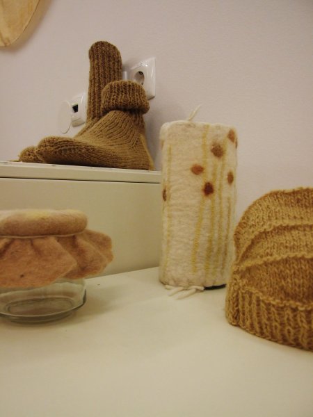 Iz barvane volne ročno plete šale, kape, rokavice, nogavice, obeske in izdeluje polstene copate, torbice, nakit in različne druge izdelke.