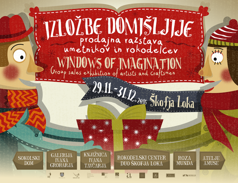 Izložbe domišljije, prodajne razstave v Škofji Loki, ponovno odpirajo svoja vrata. Vljudno vas vabimo na odprtje razstav v torek 29. novembra 2016 ob 18. uri v Galerijo Ivana Groharja, ob 18.30 uri v trgovino Rozamunda, ob 18.45 uri v atelje Amuse, ob 19. uri v Rokodelski center DUO Škofja Loka ter ob 19.30 v Sokolski dom.