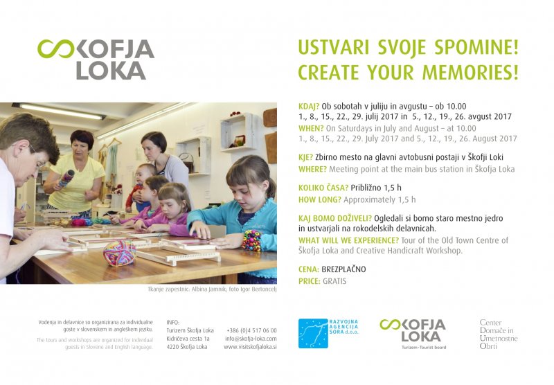 Sledi krajši ogled starega dela mesta, nato pa rokodelska delavnica v Rokodelskem centru DUO Škofja Loka. Termini delavnic: