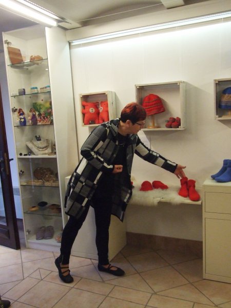 Na drugi strani pa Tatjano Švab pri njenem rokodelskem ustvarjanju navdihuje volna. Iz lastne domače jezersko-solčavske volne v svojem značilnem pletilskem izrazu izdeluje različne pletene izdelke, najbolj pa je znana po svojih pletenih otroških copatkih. Ustvarja v tehniki ročnega pletenja, kvačkanja in kuhane volne. Na razstavi se predstavlja tudi s pletenimi izdelki, izdelanimi s tradicionalnimi vzorci pletenja, ki so se oblikovali na Gorenjskem.