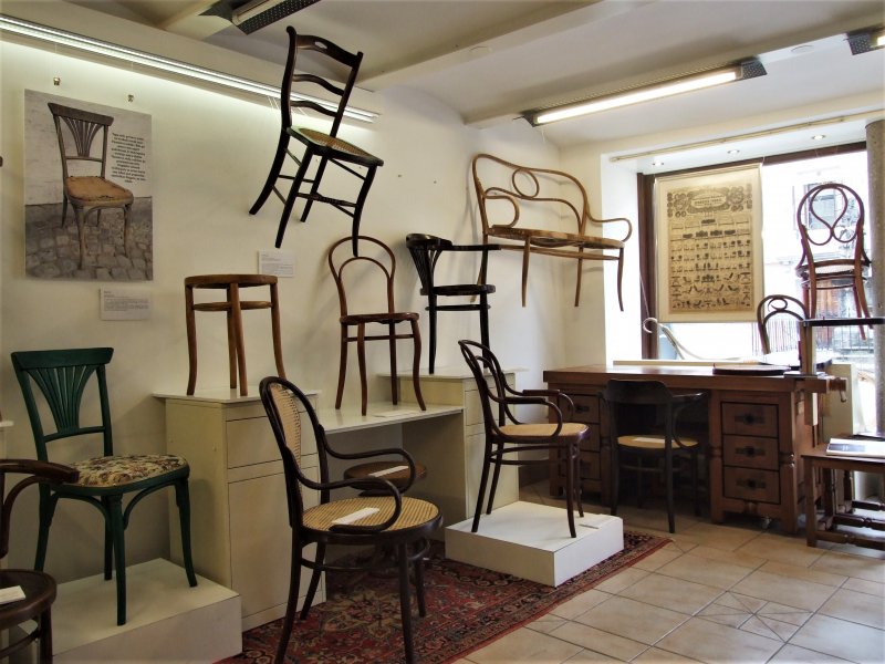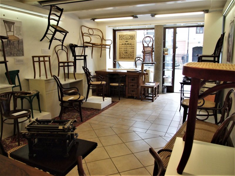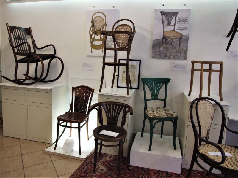S to svetovno uspešnico je povezana tudi Škofja Loka. V Loškem muzeju Škofja Loka hranijo zibelko s Tavčarjevega dvorca na Visokem izdelano v tehniki krivljenega lesa. Škofja Loka pa je del svetovnega Thonetovega mozaika predvsem po zaslugi Jurija Riharja. Njegova zbirka, ki obsega več kot 250 kosov pohištva, je prav posebna. Jurij Rihar namreč pohištvo sam restavrira in obnavlja. Plete mreže iz ratana, v parni komori in s posebnimi modeli krivi les in starim, polomljenim kosom pohištva vdahne novo življenje.