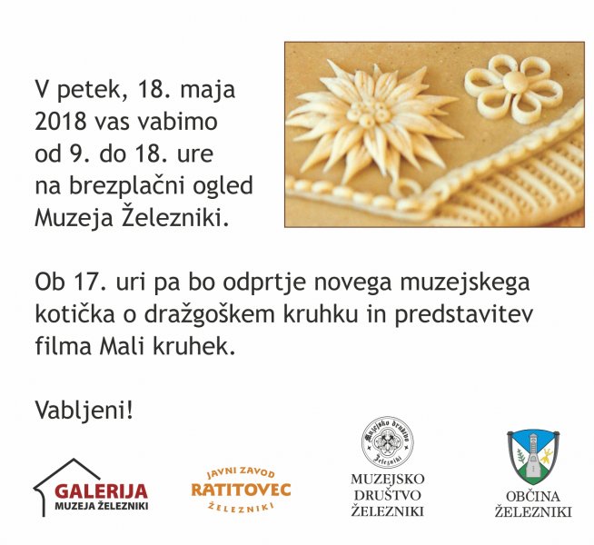 Ob 17h: Odprtje novega muzejskega kotička o izdelavi dražgoškega kruhka in predstavitev filma Mali kruhek, veliko ljubezni