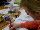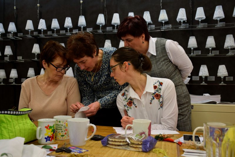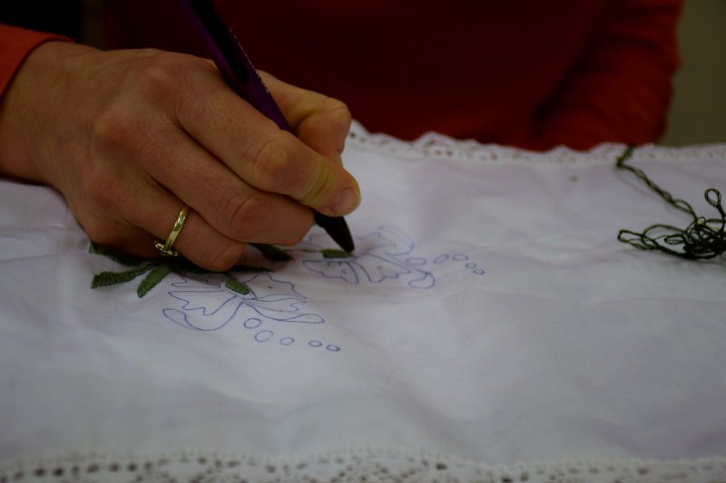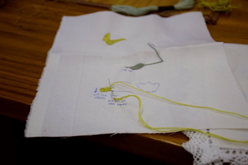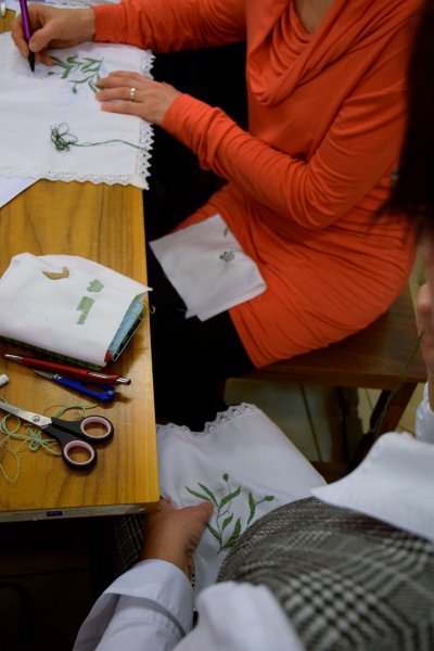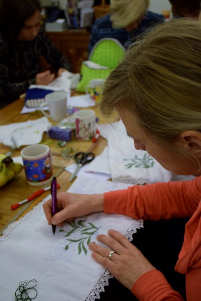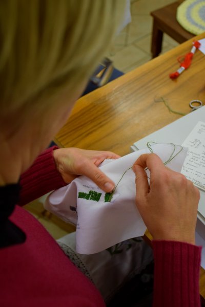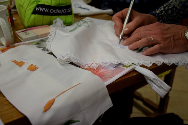 V Rokodelskem centru DUO Škofja Loka poteka tečaj vezenja. V treh srečanjih se bodo udeleženke naučile osnov oz osnovnih vbodov za vezenje. Stebelni, polni in narodni vhod so že na vajenicah.
