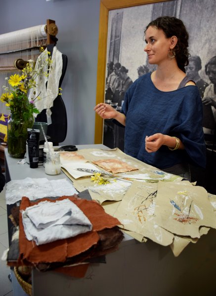 Anja Doblanovič Šešek se bo v Kreativnicah predstavljala z zadnjo kolekcijo lanenih oblačil in tekstilnih torb, ki jih barva z rastlinami in z rastlinami nanje ročno tiska.