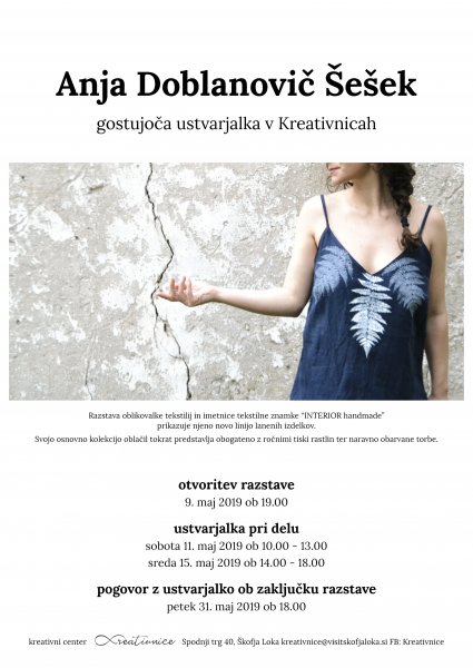 Odprtje razstave_Gostujoča ustvarjalka v Kreatvnicah: Anja Doblanovič Šešek: INTERIOR handmade
