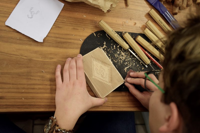 Pretekli mesec se je v Rokodelskem centru DUO Škofja Loka rezbarenja učilo osem novih vajencev. Nastali so prvi modeli za mali kruhek! Učenke in učenci so na dobri poti, naj pridobljeno znanje nadgrajujejo in naj dleta ustvarijo čim več novih vzorcev!