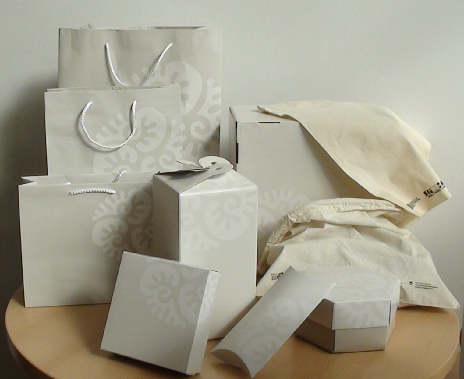 Celovita in enotna predstavitev rokodelskih izdelkov vsebuje fotografije rokodelskih izdelkov, spremna besedila - kartice, označbe izdelkov - nalepke, embalažo, slogane in obešanke.